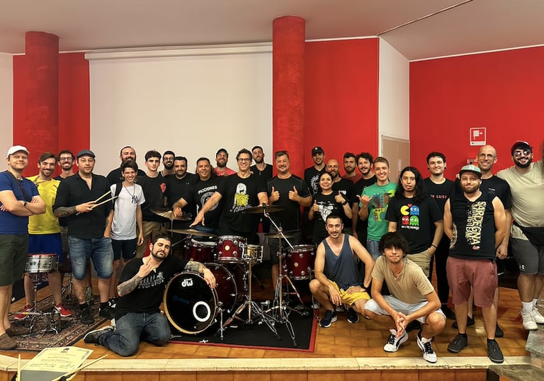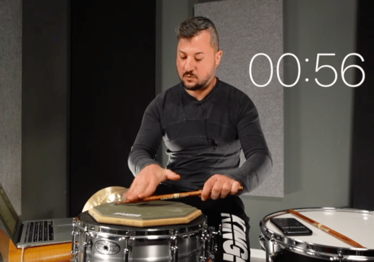 I can safely say that this technique will be very different for each and everyone of you (beginners or professionals, talented or not). No matter what techniques you have previously studied and used, this, the Merlini Technique as the great Virgil Donati called it, is something that will surely lead you to experience new mechanics of movement, therefore different sensations along the entire forearm, such as a muscle warming (burns) and tension in the wrist area. You will be able to generate and release an enormous elasticity that will allow you to reach speeds that are extremely superior to the BPM that we are all used to call “fast”. I want to say that with this technique it is possible to easily reach 300 BPM with alternating strokes while with the classic “Finger Technique”, “Moller” “Wrists” etc. you can only achieve 200/220 BPM on average. There are also unique cases but in general these are the speeds that even a very skilled drummer can reach with standard techniques. Many people ask me how I managed to develop and implement this technique: the answer is simple, I needed to speed up the single stroke without stiffening the forearm or using the fingers which I consider dangerous movements for tendons and muscles in general, besides the fact that, however, as already mentioned, it is not possible to accelerate much above these thresholds. In 2005 I realized that despite intense study and the application of numerous techniques, I was struggling to speed up both the right hand and especially the left hand.